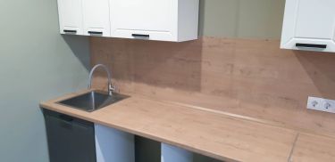 Соберём каркасы, навесим шкафы, дверцы и фурнитуру. Всё отрегулируем. Установим, мойку с сифоном и смесителем.